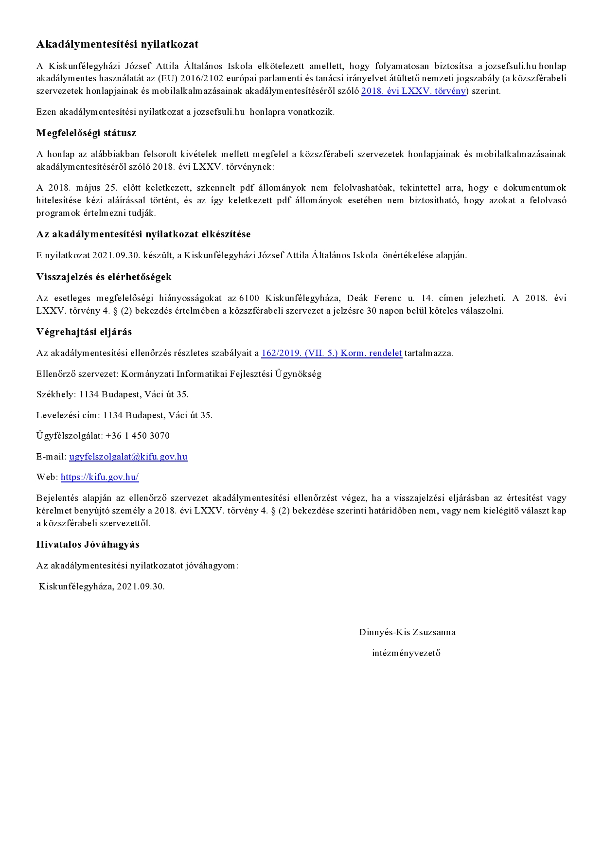 Akadálymentesítési nyilatkozat